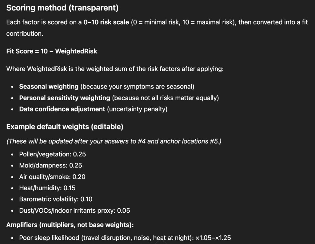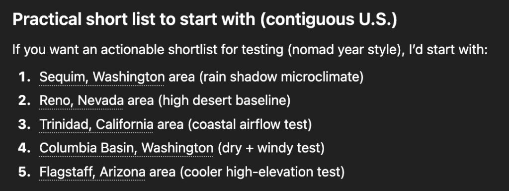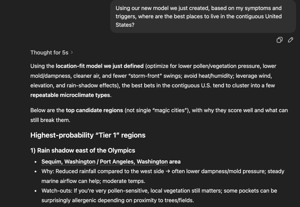 ChatGPT’s shortlist of places for me to live with less symptoms